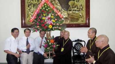 Trong không khí rộn ràng mừng Đại lễ, Lãnh đạo Tỉnh ủy, HĐND, UBND, Ủy ban MTTQ tỉnh Thừa Thiên - Huế đã đến thăm, chúc mừng Ban trị sự Giáo hội Phật giáo tỉnh Thừa Thiên - Huế; thắp hương tưởng niệm cố Hòa thượng Thích Thiện Siêu, nguyên đại biểu Quốc hội khóa VIII, IX, X, Viện trưởng học viện Phật giáo Việt Nam tại Huế, Trưởng Ban Giáo dục Tăng ni Trung ương. Ông Nguyễn Văn Cao, Phó Bí thư Tỉnh ủy, Chủ tịch UBND tỉnh Thừa Thiên - Huế bày tỏ vui mừng trước không khí vui tươi, rộn ràng đón mừng Phật đản của tăng ni, phật tử trên địa bàn tỉnh; đồng thời ghi nhận và đánh giá cao những đóng góp của Ban trị sự Giáo hội Phật giáo tỉnh, các vị chức sắc cũng như các tăng ni, phật tử trong thời gian qua, nhất là trên lĩnh vực văn hóa, giáo dục, từ thiện xã hội. Đồng thời bày tỏ mong muốn Giáo hội Phật giáo tỉnh tiếp tục phát huy hơn nữa những kết quả đã đạt được cùng nhân dân xây dựng tỉnh Thừa Thiên - Huế ngày càng phát triển và có nhiều hoạt động xã hội tốt đẹp. Chủ tịch UBND tỉnh chúc Ban Trị sự, tăng ni, phật tử tỉnh Thừa Thiên - Huế đón một mùa Phật đản vui tươi, an lạc và các hoạt động của mùa Phật đản diễn ra thành công tốt đẹp. Hòa thượng Thích Khế Chơn, Ủy viên Thường trực Hội đồng Trị sự Giáo hội Phật giáo Việt Nam, Phó Trưởng ban Thường trực Ban Trị sự Giáo hội Phật giáo tỉnh Thừa Thiên - Huế bày tỏ biết ơn về sự quan tâm của lãnh đạo tỉnh đối với phật tử trong thời gian qua, nhất là sự hỗ trợ, tạo điều kiện của tỉnh trong việc tổ chức Tuần lễ Phật đản 2013 - Phật lịch 2557, đồng thời khẳng định sẽ tiếp tục phát huy truyền thống yêu nước, thắt chặt và phát triển khối đại đoàn kết dân tộc, thực hiện tốt các hoạt động từ thiện xã hội, xây dựng quê hương ngày càng giàu đẹp, văn minh. Tuần lễ Phật Đản ở Thừa Thiên - Huế mở đầu bằng hoạt động thắp sáng 7 đóa sen khổng lồ trên sông Hương. Mỗi bông hoa sen nặng 300kg, đường kính 7,6m, cao 3,7m, làm bằng chất liệu sắt và vải lụa hồng đặt trên một bệ phao nổi, được thắp sáng về đêm. Trong suốt Tuần lễ Phật đản năm 2013, tại Huế còn tổ chức các hoạt động như lễ khai kinh tại Tổ đình Từ Đàm và tụng kinh Pháp Hoa suốt tuần lễ; lễ khai mạc triển lãm tại Trung tâm văn hóa Phật giáo Liễu Quán; dâng hương và đặt vòng hoa tưởng niệm tại Bảo tháp Tôn đức Tăng Ni vị Pháp thiêu thân tại Huế; khai mạc hội thi “Tiếng hát áo lam” chủ đề “Em mong mùa sen nở;” khai mạc hội thi vẽ tranh chủ đề “Chim oanh hướng về Phật đản”… Quốc Việt |
